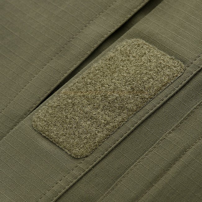Im oberen Teil des Rückens befindet sich eine verstärkte Passe mit Klettverschluss für einen IR-Marker unter dem Kragen, Dehnfalten um die Arme sorgen für Bewegungsfreiheit, auch wenn ein Schutzweste getragen wird. Die Ärmel sind mit einer Ellbogentasche für eine weiche Einlage ausgestattet. Die Ärmelbündchen sind durch Klettverschlüsse in der Weite verstellbar.