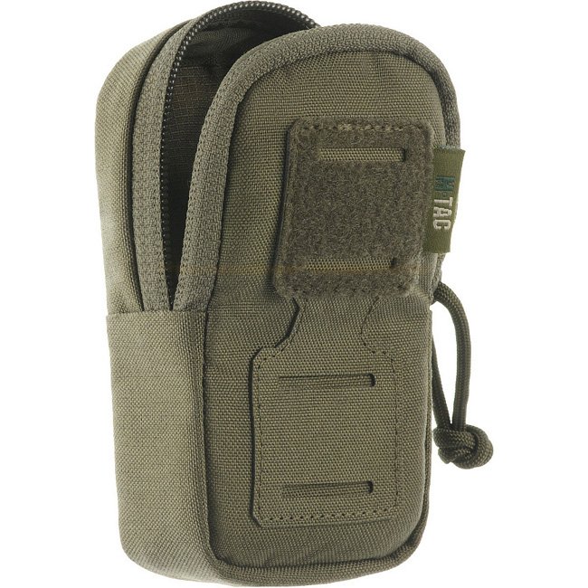 Die M-Tac PC Utility Pouch Elite in Ranger Green Farbe, ausgestattet mit einer MOLLE-Schnittstelle, einem Fach für kleine Gegenstände, Abflussloch und Klettfläche für Patches und Kennzeichnungen. Hergestellt aus Cordura 500D. Abmessungen: 13 x 6 x 3 cm.