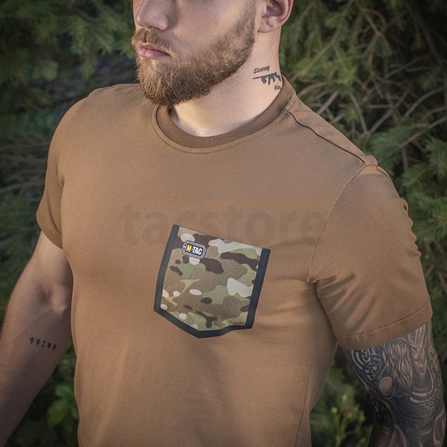M-Tac Pocket T-Shirt 93/7 - Coyote - 2XL: Hochwertiger atmungsaktiver Stoff, anatomischer Schnitt, kleine Brusttasche für Dokumente.