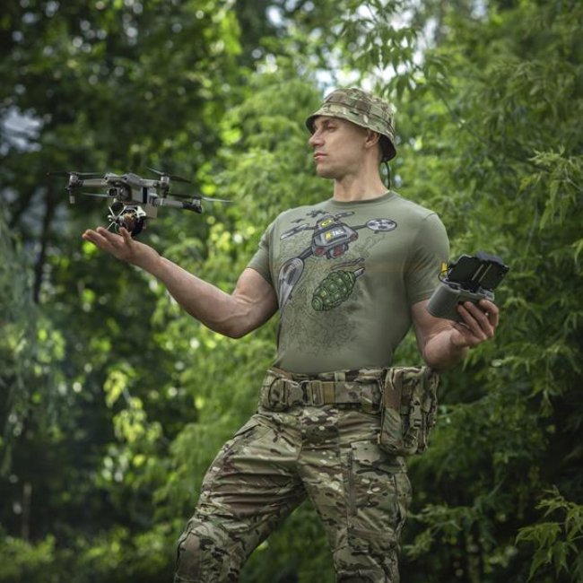 M-Tac Quadcopter T-Shirt in Helloliv, Größe S. Hergestellt aus 93% Baumwolle und 7% Elasthan, nur 200 g schwer. Perfekte Kombination aus Komfort und Stil!