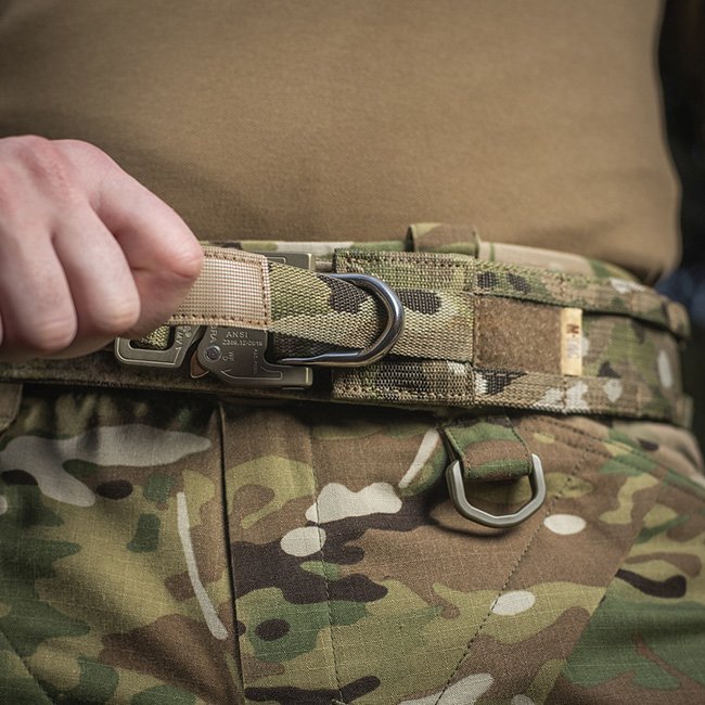 Hergestellt aus starkem Nylongewebe, widerstandsfähig gegen Reibung und mechanische Beschädigung. An der Außenseite befindet sich eine MOLLE Schnittstelle, mit der Sie zusätzliche Ausrüstung sicher installieren können. Geschlossen wird der Gürtel mit einer speziellen Cobra 25mm Schnalle des österreichischen Herstellers AustriAlpin, die auch extremsten Belastungen standhält. Es schließt schnell und lässt sich durch gleichzeitiges Drücken der seitlichen Riegel leicht lösen.
