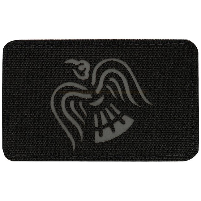 M-Tac Rabenbanner Lasergeschnittener Aufnäher in Schwarz/Grau. Hergestellt aus Cordura 500D Nylon auf der Vorderseite und Klettfläche auf der Rückseite. Maße 80 x 50 mm.