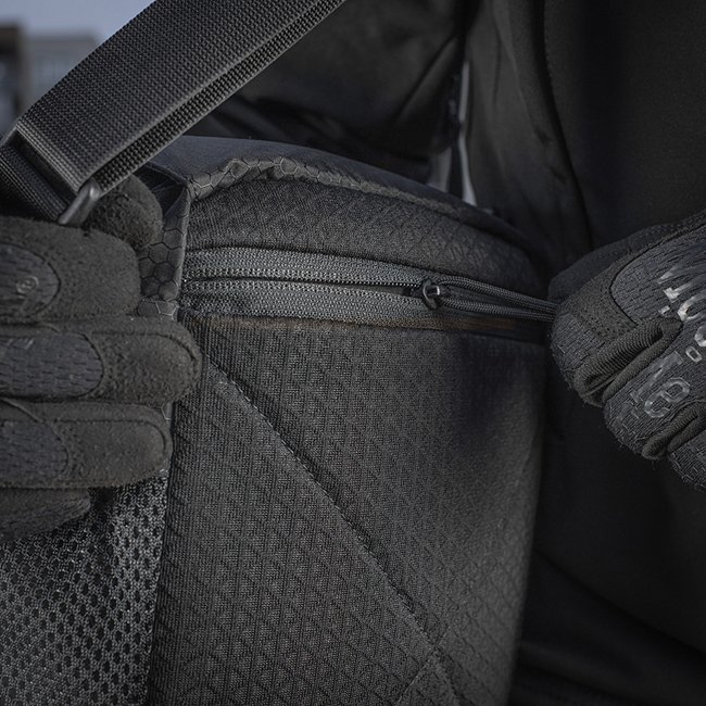 Clever angeordnete Taschen ermöglichen es, ein EDC Kit bequem zu verstauen und alle wichtigen Dinge griffbereit zu haben. Im mittleren Fach befinden sich zwei Taschen: eine offene und eine aus Mesh mit Reißverschluss. Dieses Modell hat ein Fach zum verdeckten Tragen mit schnellem Zugriff. Die Innenwand aus Velours ermöglicht das Anbringen von Holstern oder anderen modularen Einsätzen. Zwei Netztaschen an den Seiten eignen sich hervorragend für eine Wasser- oder Thermosflasche.