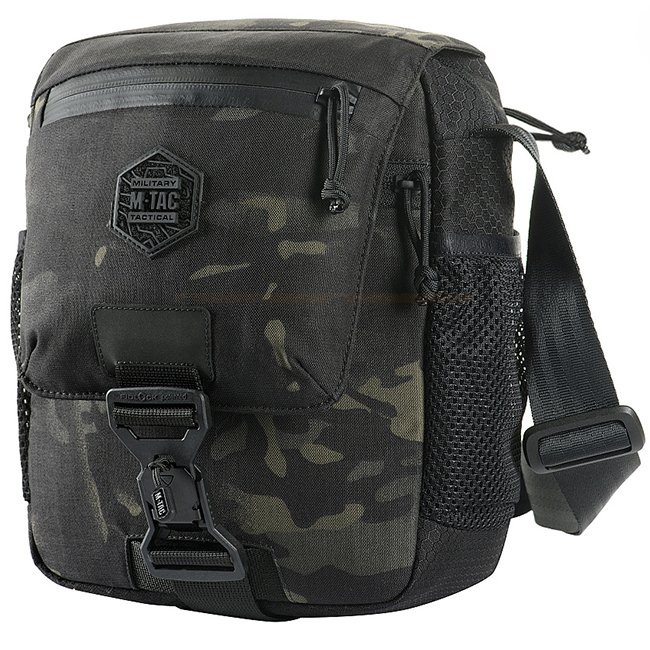 M-Tac Satellite Magnet Tasche Elite Hex - Multicam Black ist eine vielseitige Organizer-Tasche aus strapazierfähigem Hex-Polyester und Cordura 1000D. Ausgestattet mit YKK und Woojin Hardware, einem magnetischen Fidlock-Verschluss, verstellbarem Nylon-Schu
