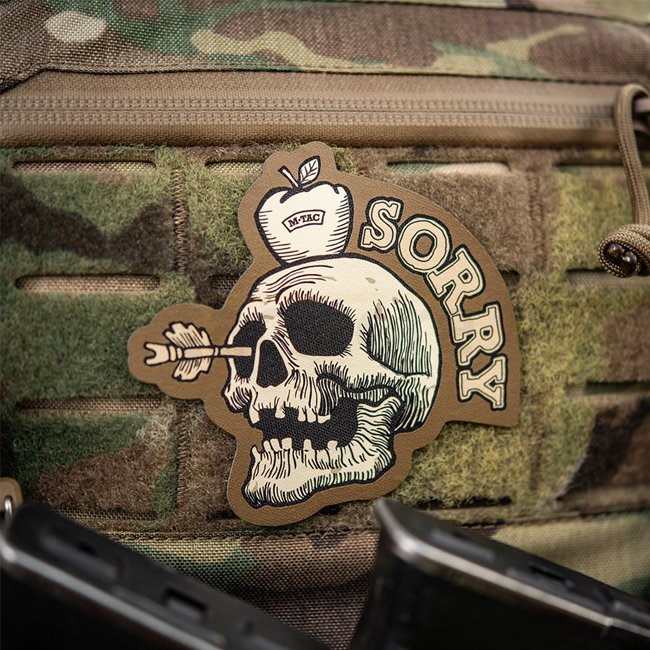 M-Tac SORRY Aufdruck Patch - Coyote, hergestellt aus Oxford 190g/m Frontmaterial und Hakenflächenrückseite, Maße 83 x 85 mm.
