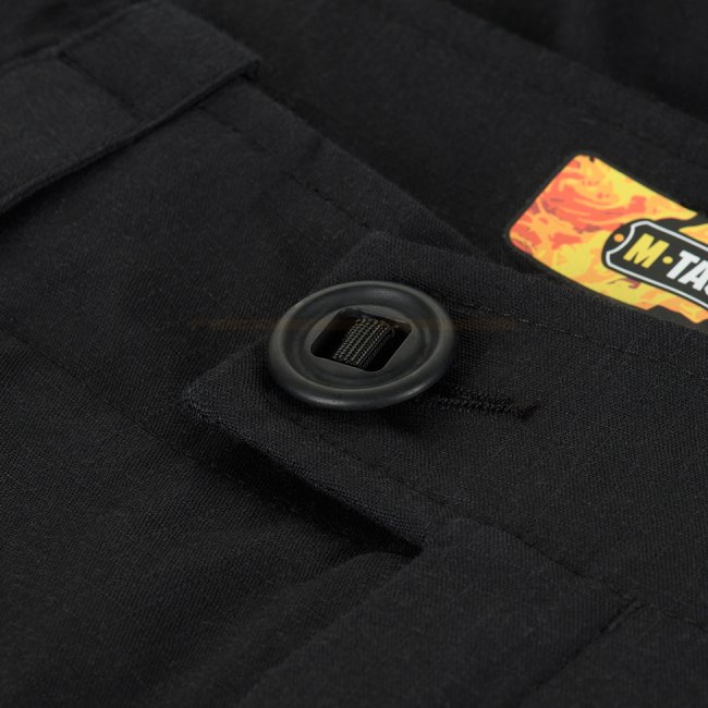 Der Gürtel der Hose ist mit Gurtbändern verstellbar und kann mit einem bis zu 5,5 cm breiten Gürtel getragen werden. An der Vorderseite befinden sich zwei D-Ringe zum Befestigen verschiedener Ausrüstungsgegenstände. Die Weite des Kniebereichs ist mit Hilfe von Klettverschluss verstellbar. Entlang der Unterkante der Hose ist eine elastische Kordel gespannt und Klettverschlüsse ermöglichen eine Größenregulierung.