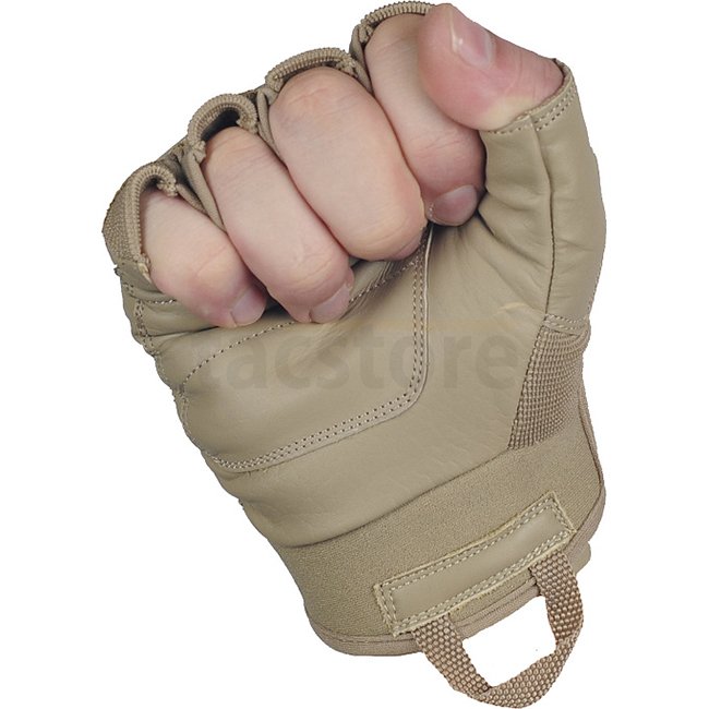 M-Tac Taktische Angriffshandschuhe fingerlos Mk.4 in Khaki XL mit verstärktem Handflächenpolster aus echtem Leder für den Waffengebrauch. Ausgestattet mit Polsterung über den Knöcheln und Klettverschluss. Material: Polyester/Leder.