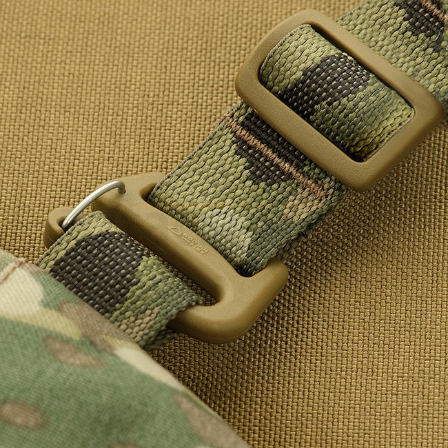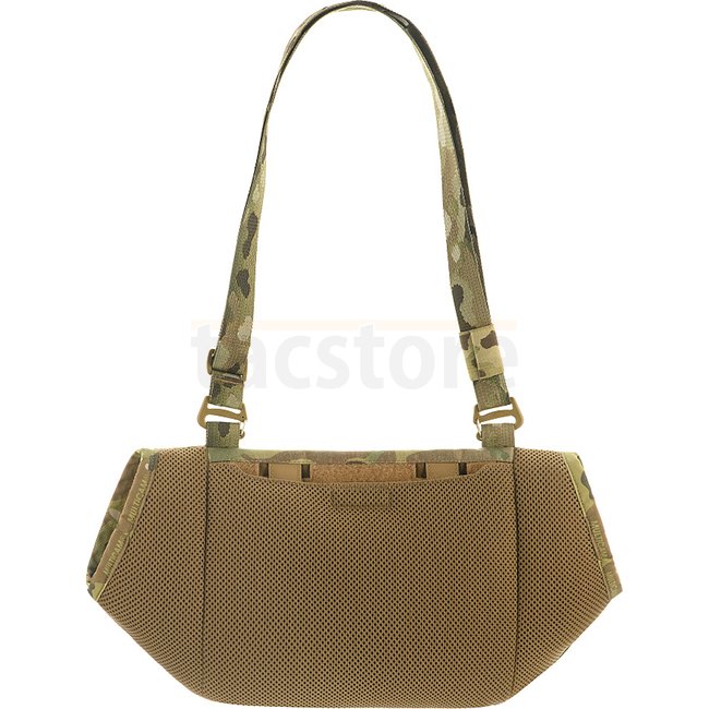 Mit dem Schultergurt kann der Muff in jeder Position sowie mit einer Kombination verschiedener Kleidungsstücke getragen werden. Speziell für das Militär ist dieses Modell mit einem Klettband ausgestattet und so konzipiert, dass es an einem Klettverschluss unter der Frontplatte eines Plattenträgers befestigt werden kann. Wenn an der Weste kein Klettverschluss vorhanden ist, kann der Muff mit T-förmigen Verbindern an einem MOLLE-System befestigt werden.