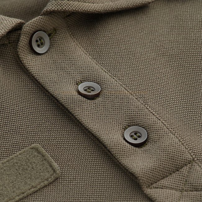 M-Tac taktisches Poloshirt mit langen Ärmeln in Dunkeloliv XL. Material besteht aus 65% Baumwolle, 35% Polyester.