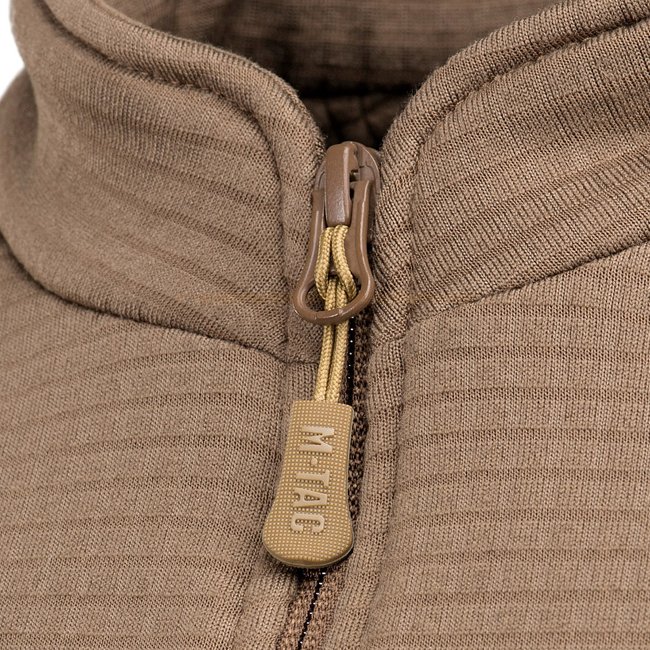 M-Tac Thermo-Fleece-Shirt Delta Stufe 2 - Coyote - L ist ein thermischer Pullover für kaltes Wetter, der nach dem US ECWCS-Modell mit wärmenden und feuchtigkeitsableitenden Eigenschaften gestaltet ist.