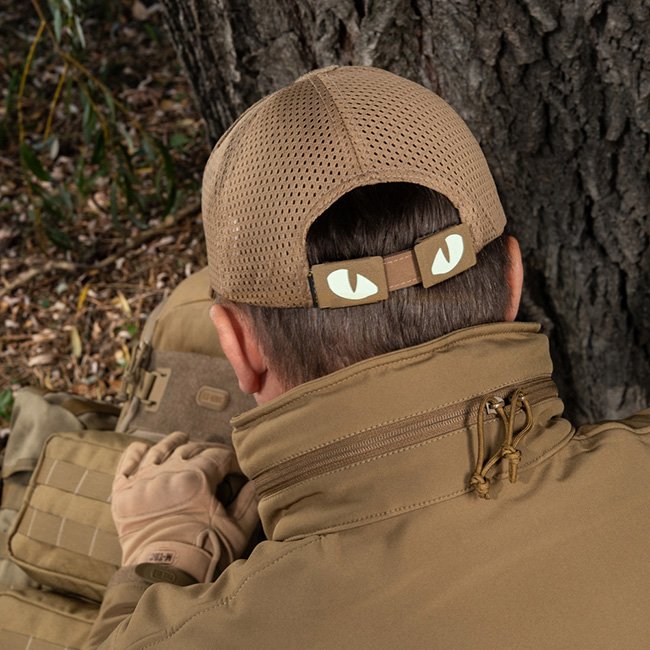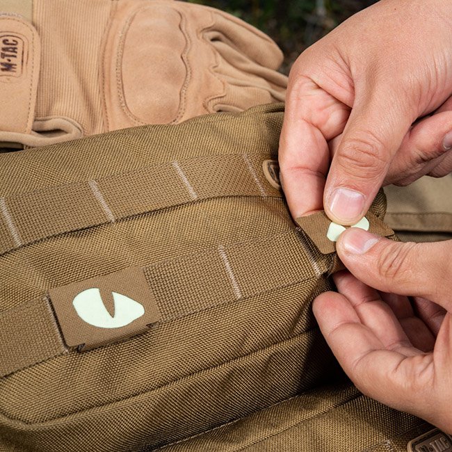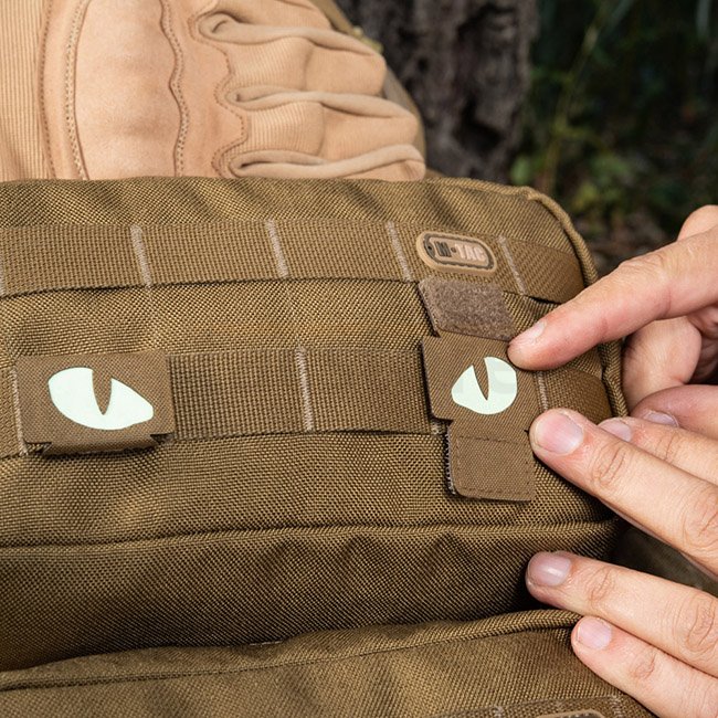 M-Tac Tiger Eyes Laser Cut Patch - Coyote. Hergestellt aus lichtakkumulierendem Material, das im Dunkeln leuchtet. Cordura 500D. Abmessungen: 40 x 25 mm (x2).