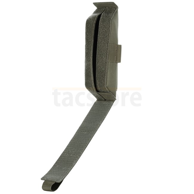 Auf der Rückseite der Tasche befinden sich zwei Laschen mit Klettverschlüssen. Sie können die Tasche damit an der Unterseite eines Plattenträgers oder an dessen rechter oder linker Seite befestigen. Entfernen Sie dazu den modularen Einsatz aus dem Plattenträger, befestigen Sie die Tasche mithilfe der Klettverschlüsse an der Unterseite und bringen Sie den modularen Einsatz wieder in seine ursprüngliche Position zurück.