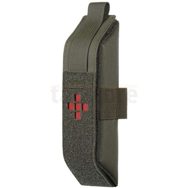 Ein geschlossenes Tourniquet-Etui in Ranger Green von M-Tac, das Ihren Tourniquet vor Schmutz und Staub schützt. Verfügt über eine leicht zugängliche Schlaufe, einen Klettverschluss für sicheren Verschluss und einen Klettverschluss mit einem "Kreuz"-Symbo