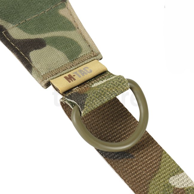 Dieses Schlingenmodell bietet sowohl ein Zweipunkt- als auch ein Einpunkt-Befestigungssystem. Um den Riemen in einer Standard-Zweipunktanwendung zu verwenden, wird die Schlinge hinten in der Nähe des Schafts oder am QD-Sockel und der Metallkarabiner vorne am Gewehr befestigt. Um den Waffenriemen in einen Einpunktriemen umzuwandeln, genügt es, den Karabiner am D-Ring einzuhaken, der sich in der Nähe des weichen Schulterpolsters befindet. Eine innovative Metallschnalle mit T-förmigem Hebel sorgt für eine schnelle Längenverstellung.
