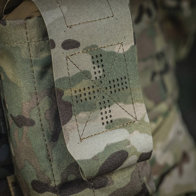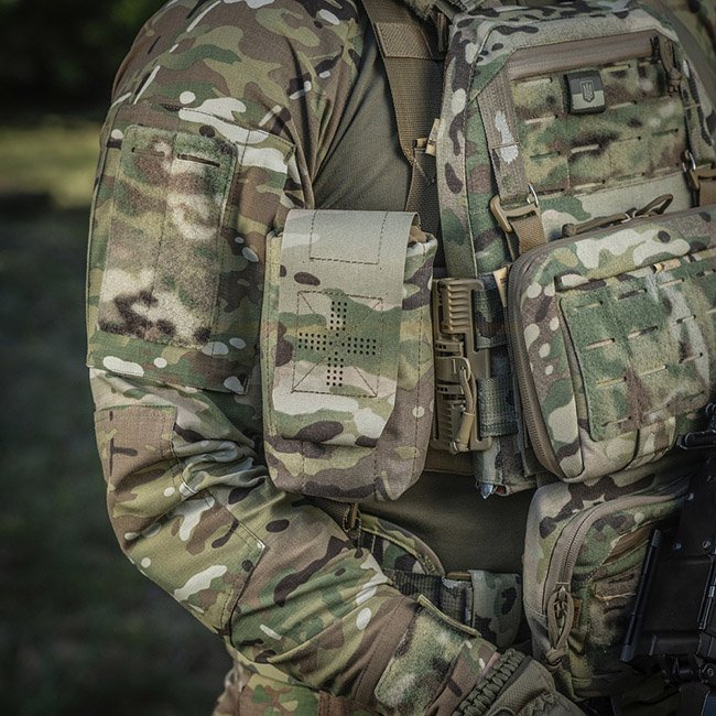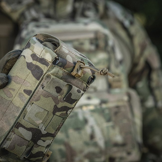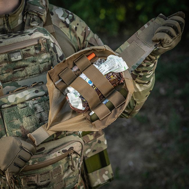 Die Außentasche besteht aus Cordura 500D - einem strapazierfähigen Material, das abriebfest und hohen Belastungen standhält. Die inneren Seitenwände sind aus elastischem Nylon, wodurch es seine Form behält. Ein zusätzliches Befestigungselement ist ein Gurt, mit dem Sie das Erste-Hilfe-Set auch während der Aktivität sicher halten können. Wird über die MOLLE-Schnittstelle an der Ausrüstung befestigt.