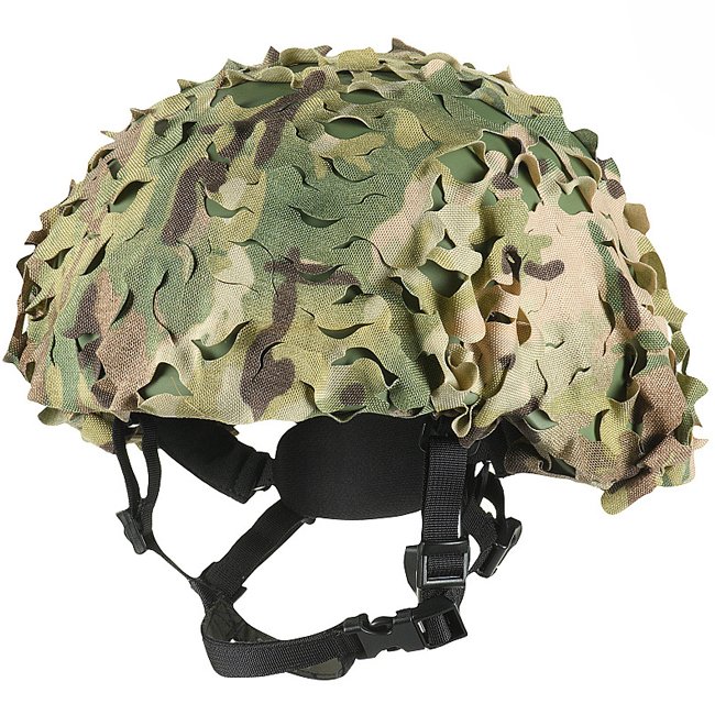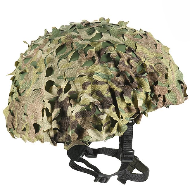 Der Bezug ermöglicht die Anbringung von zusätzlicher Tarnausrüstung und lässt sich mit Klettverschlüssen leicht am Helm befestigen. Ein spezielles elastisches Shock-Cord an der Unterkante hilft bei der Fixierung und Anpassung des Bezugs an den Helm.