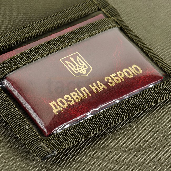 Es hat zwei große Fächer für Geldscheine, Fächer für Karten und Kunststofffächer für Dokumente. Es gibt auch eine Kleingeldtasche, die mit einem Reißverschluss geschlossen wird. Auf der Vorderseite mit Klett können Sie verschiedene Patches anbringen.