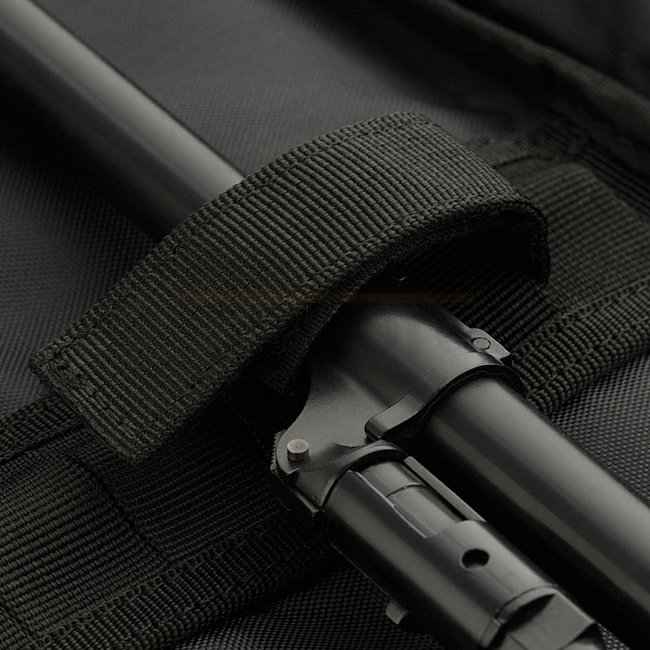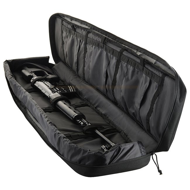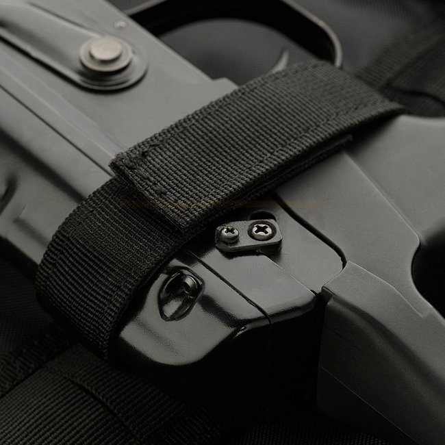 Sie verfügt über integrierte gepolsterte Einsätze und zwei Innentaschen für Magazine. Die Waffe kann mit Hilfe von Klettverschlüssen gesichert werden.