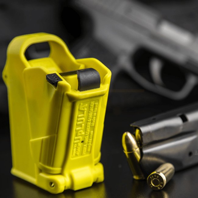 Der UpLULA®-Lader ist ein universeller Pistolenmagazinlader im Taschenformat, der zum Laden und Entladen praktisch aller 9mm bis .45ACP Single- und Doublectack-Magazine aller Hersteller konzipiert ist. Er ist auch mit den meisten .380ACP Single - und Doublestack sowie 1911er Magazinen kompatibel. Der UpLULA® Loader passt sich automatisch an das Magazin an und lädt es einfach, schmerzfrei und zuverlässig!
