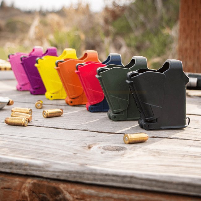 Der UpLULA®-Lader ist ein universeller Pistolenmagazinlader im Taschenformat, der zum Laden und Entladen praktisch aller 9mm bis .45ACP Single- und Doublectack-Magazine aller Hersteller konzipiert ist. Er ist auch mit den meisten .380ACP Single - und Doublestack sowie 1911er Magazinen kompatibel. Der UpLULA® Loader passt sich automatisch an das Magazin an und lädt es einfach, schmerzfrei und zuverlässig!