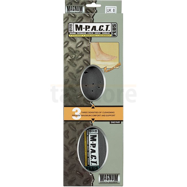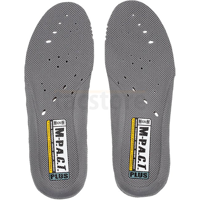 Verbessern Sie Ihr Schuhwerk mit der Magnum M-P.A.C.T. Plus Einlage - 46. Diese vielseitigen Einlagen bieten leichten Komfort und Unterstützung für alle Arten von Schuhen und Stiefeln, mit Memory-Schaum und einer weichen oberen Schicht, die sich an Ihren
