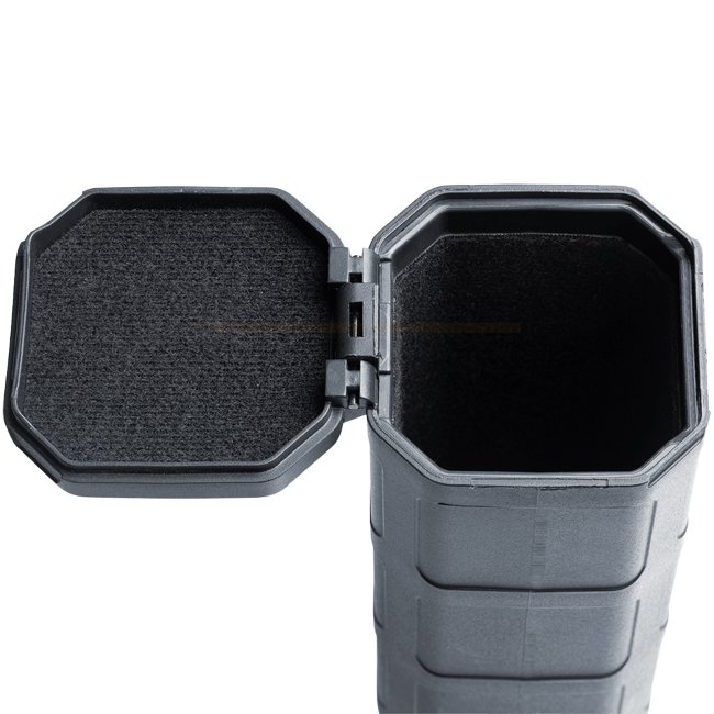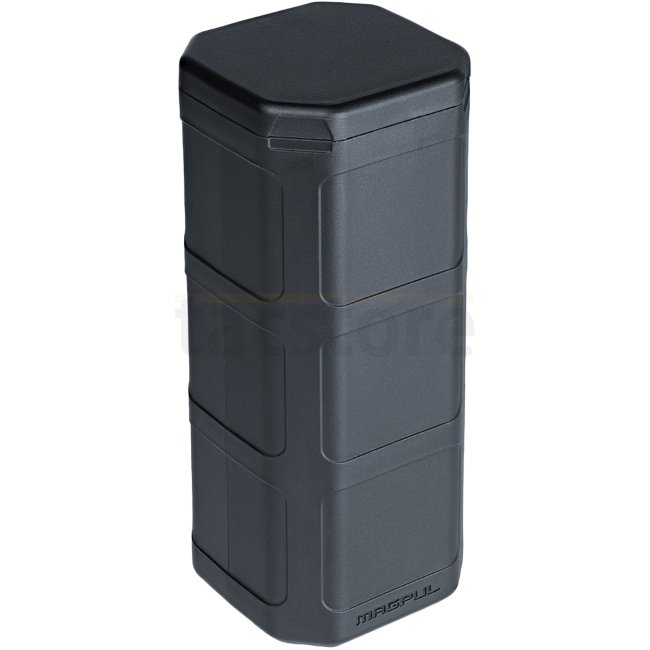 Der Magpul DAKA Behälter in Grau ist ein robuster Polymer-Aufbewahrungsbehälter, der nur 110g wiegt. Die externen Abmessungen sind 162,6 x 63,5 x 68,6 mm, während die internen Abmessungen 152,4 x 53,6 x 53,6 mm sind.