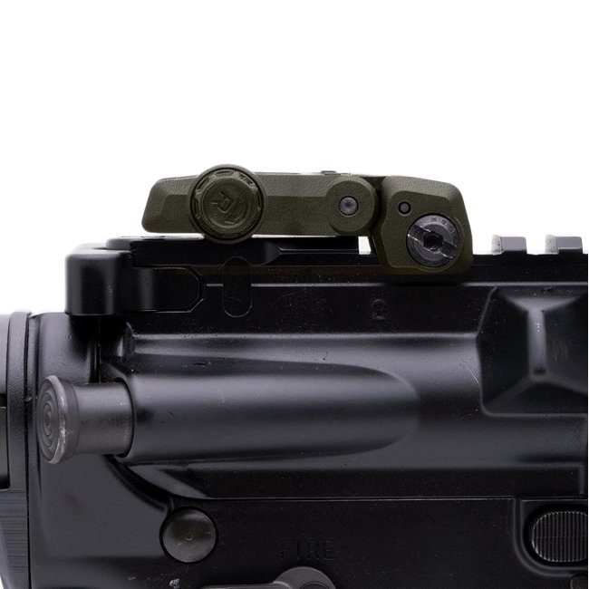 MBUS 3 Rear Sight von Magpul ist ein kompaktes, federbelastetes Klappvisier aus schlagfestem Polymer. Im gefalteten Zustand nur ca. 14 mm hoch und ca. 35 mm breit. Im ausgeklappten Zustand sitzt es auf Standard‑AR‑Visierhöhe. Es verfügt über beidhändige Druckknopf‑Auslösung und ein Schnellauswahl‑Appertursystem mit Windage‑Einstellung. Gewicht inkl. Montagematerial ca. 30 g.