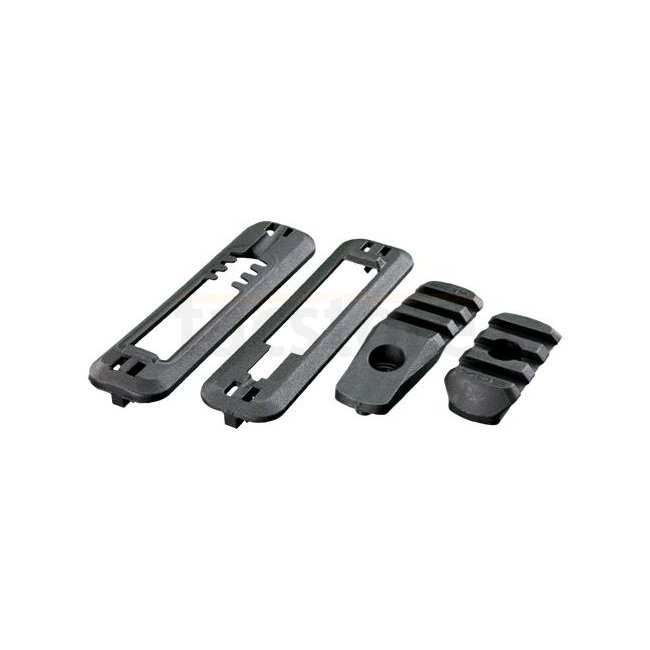 Das MOE Illumination Kit enthält alle notwendigen Teile um eine 1913 Picatinny Schienen-kompatible Lampe an einen MOE Handschutz zu montieren. Das vierteilige Set enthält eine kurze Schiene, einen abgewinkelte Schiene, zwei Surefire®-optimierte Druckschalter Montage (passend zu beidem, altes und neues Design) sowie alle weiteren benötigten Montageteile.