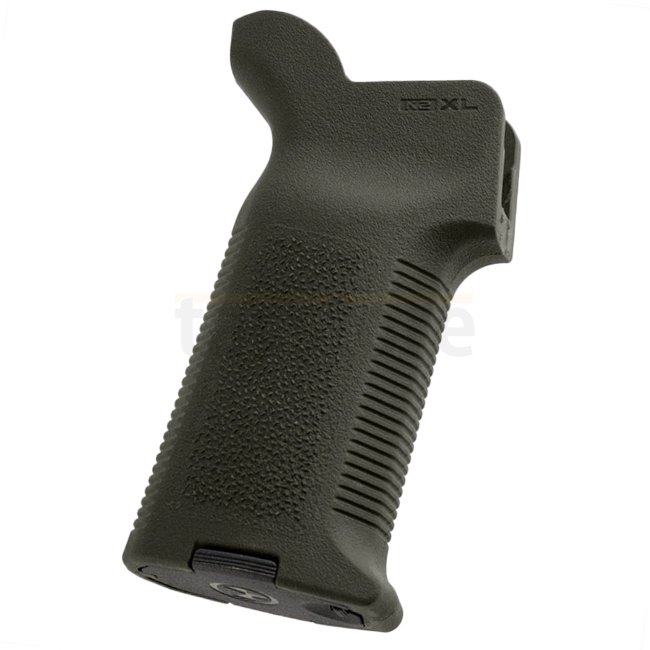 MOE K2‑XL Grip von Magpul ist rund 25 Prozent größer als der Standard MOE‑K2 und ideal für größere Hände. Der Griffwinkel ist steiler (~17°) und die Beavertail‑Rückenstütze sorgt für bessere Handposition und Kontrolle bei Kurzwaffenkonfigurationen mit kurzem LOP. Die aggressive TSP‑Textur und frontale/rückwärtige Riffeln verbessern Griffigkeit. Der Griff wird mit XL‑Gripkappe, Ölflaschen‑Kern und Montagematerial geliefert. Andere Magpul Grip‑Cores passen nicht.