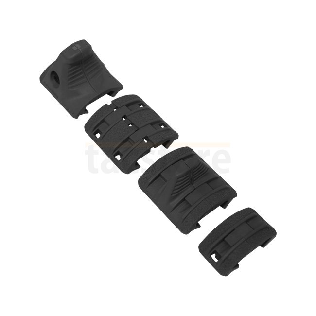 Das Magpul XTM Hand Stop Kit in Schwarz ist ein vierteiliges, auf der Schiene montiertes Kit, das für verbesserte Waffenkontrolle entwickelt wurde und verhindert, dass die Hand das heiße Korn/Mündung erreicht.