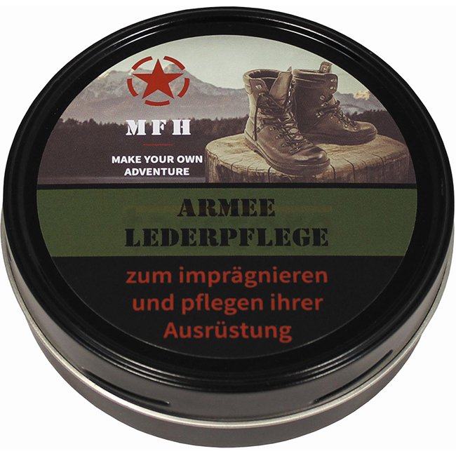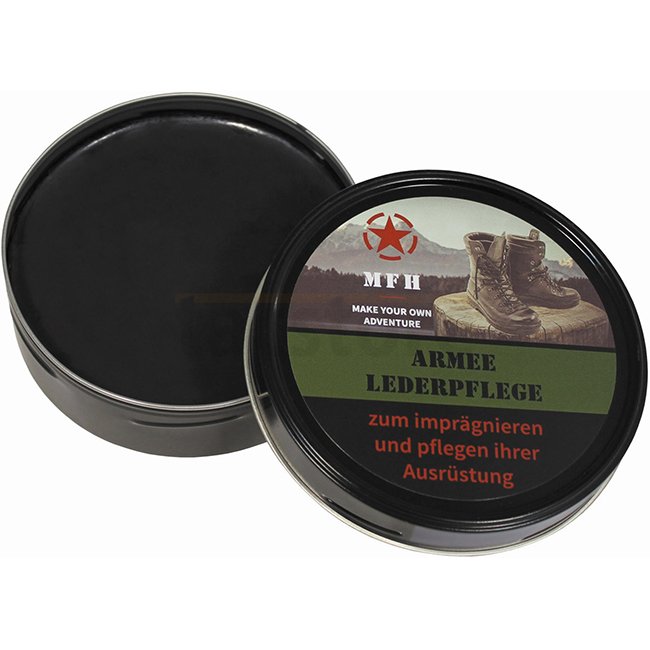 Hochwertige MFH Militärschuhcreme in einer 150 ml Dose. Geeignet für alle Lederarten, einschließlich atmungsaktiver Membran. Wasserabweisend und bietet optimale Pflege für alle Arten von Schuhen.