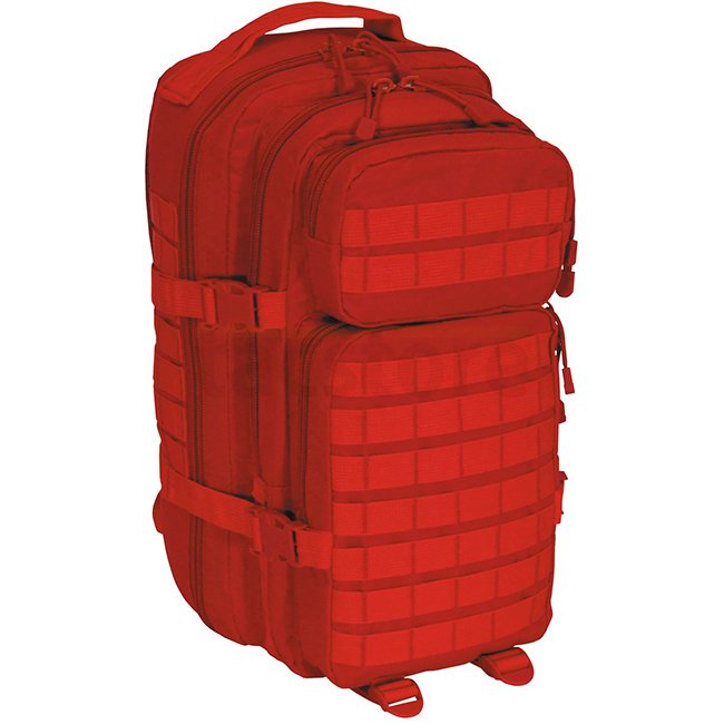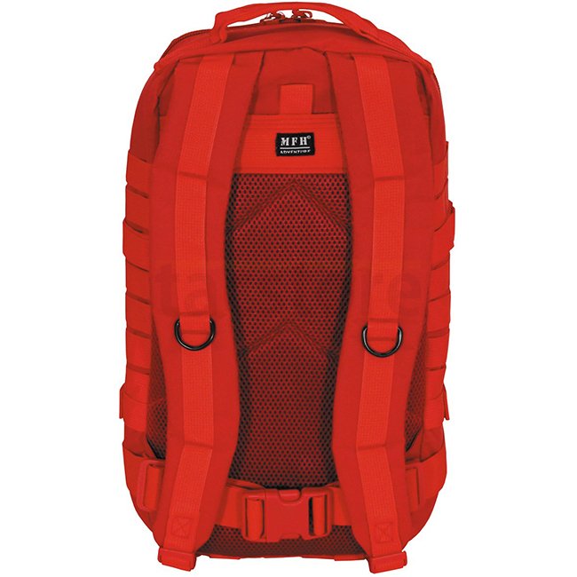 MFH Rucksack Assault 1 Basic - Rot: Verstellbare, gepolsterte Träger, große Fächer mit Reißverschlüssen und Netztaschen, Molle-Schlaufen, 30l Kapazität. Polyester.