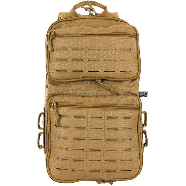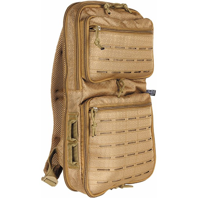 MFH Rucksack Compress OctaTac - Coyote, verstellbare gepolsterte Schultergurte, verstellbarer Brustgurt, atmungsaktive Mesh-Polsterungen, verschiedene Vordertaschen mit Reißverschlüssen, Molle-Befestigungsschlaufen, Laser-Cut-Design, Kapazität 7-15L, Maße