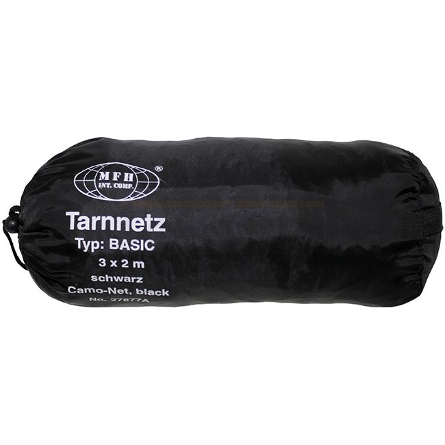 MFH Basic Camo Net 2 x 3 m - Schwarz: Langlebiges Camonet mit Tragnetz und Befestigungsschlaufen. Hergestellt aus 100% Polyester mit Polyacrylatbeschichtung. Inklusive Transporttasche für Bequemlichkeit.