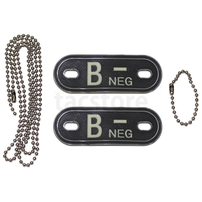 MFH Blutgruppenmarkierungen & Kette B NEG - Glühen im Dunkeln - Gummimaterial, Abmessungen: 7 cm x 2,5 cm x 2 mm