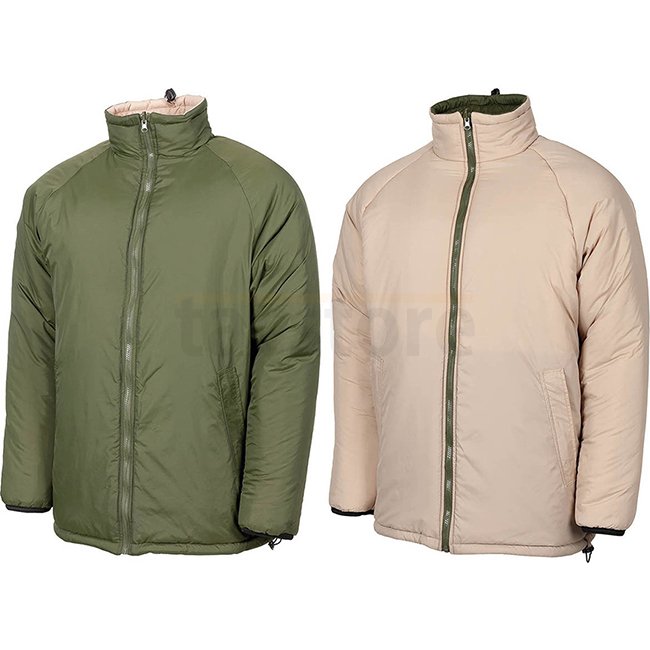 Bleiben Sie warm und stilvoll mit dieser MFH British Thermal Jacket in Olive & Khaki - 2XL. Sie verfügt über einen durchgehenden Frontreißverschluss, Hüfttaschen mit verdeckten Reißverschlüssen und verstellbare Kordelzüge am Kragen, an der Taille und an d