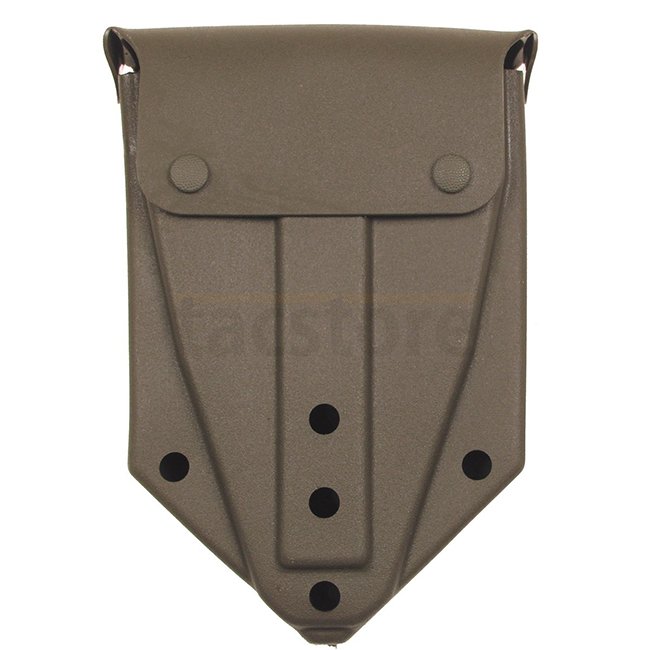 MFH BW Klappspaten-Abdeckung - Oliv. 2 Druckknöpfe, Belüftungsöffnungen, Gurtfixierung. Abmessungen: 25x18x7 cm. Gewicht: 220 g.