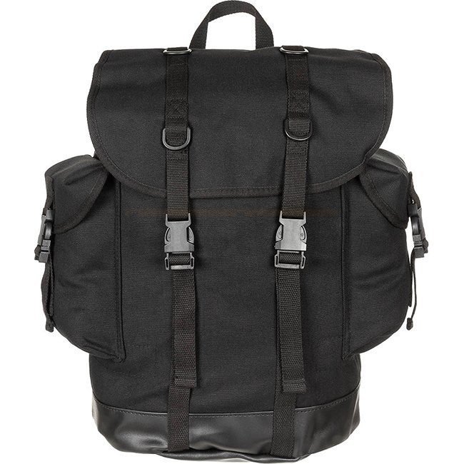 MFH BW Berg-Rucksack Neues Modell - Schwarz: Verstellbare, gepolsterte Schultergurte, abnehmbarer Hüftgurt, oberer Tragegriff, Hauptfach mit Kordelzug, Seitentaschen mit Klappe und Fächern, Deckel mit D-Ringen und Verschlüssen. Kapazität 30L. Maße