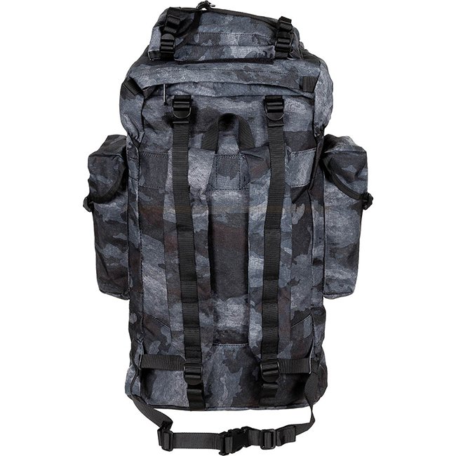 MFH Kampfrucksack 65 l - HDT Camo LE: Verstellbare gepolsterte Schultergurte, Hüftgurt mit Klickverschluss, mehrere Taschen, Hauptfach mit Bodenfach, Aluminium-Stabilitätsstab, verschiedene Befestigungsgurte, 65 l Fassungsvermögen. Abmessungen: ca. 43