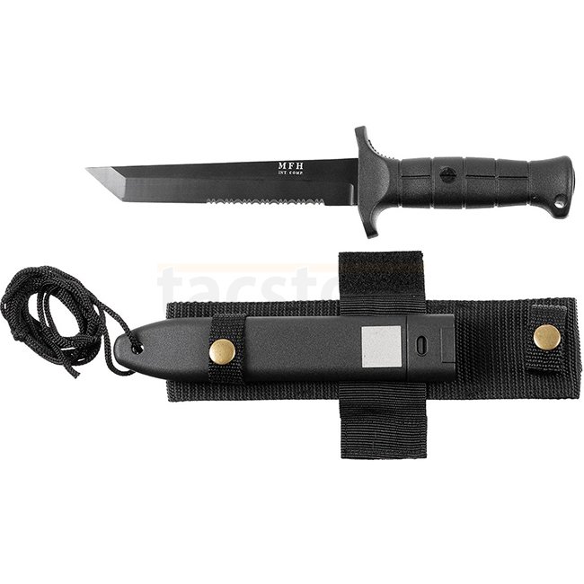 MFH Kampfmesser - Schwarz: Schwarze Tanto-Klinge mit gerilltem Kunststoffgriff und Kunststoffscheide. Gesamtlänge: ca. 30 cm.
