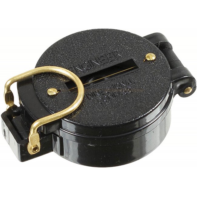 Flüssigkeitsgedämpfter kompakter MFH Kompass Scout mit 360° Graduierung, fluoreszierenden Markierungen, Vergrößerungsglas und Peilspalte. Abmessungen: 7,5 x 5,5 x 2,5 cm, Gewicht: 50 g.