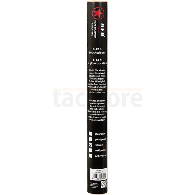 MFH Glow Stick 35cm in Rot, größere Version des Artikels Nr.: 26014, Aktivierung durch Biegen, vielseitige Anwendungen wie Not- oder Signallicht, Wegmarkierung, leuchtet unter Wasser, kommt mit Aufhängeöse, Lanyard, Transportbox, 8-12 Stunden Leuchtdauer