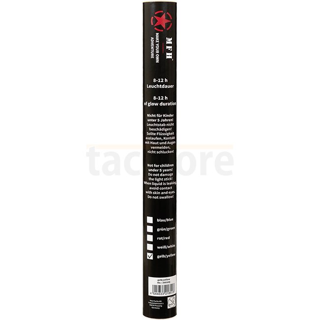 Eine größere Version des MFH Glow Sticks mit einer Länge von 35 cm in der Farbe Gelb. Einfach durch Biegen zu aktivieren, hat dieses vielseitige Produkt zahlreiche Anwendungen wie Not- oder Signallicht, Wegmarkierung und sogar Leuchten unter Wasser. Es wi