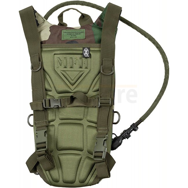 Bleiben Sie hydratisiert und bequem unterwegs mit dem MFH Hydration Backpack & TPU Bladder Extreme 2,5 l - Woodland. Verstellbare Schultergurte, Brustgurt und gepolsterter Rücken für Belüftung. Enthält TPU-Blase und Mundstück. Abmessungen: 22 x 45 x 2,5 c
