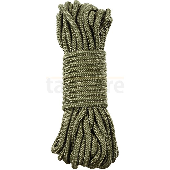 Hochwertiges 7mm x 15m olivgrünes Seil von MFH. Nicht zum Klettern geeignet.