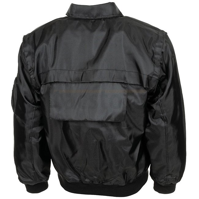 Bleiben Sie sicher und stilvoll mit der MFH SECURITY Bomberjacke in Schwarz, 4XL. Mit einem verdeckten Frontreißverschluss, mehreren Taschen, Reißverschlussärmeln und abnehmbaren Aufnähern. Hergestellt aus 100% Nylon-Außenmaterial und 100% Polyester-Futte