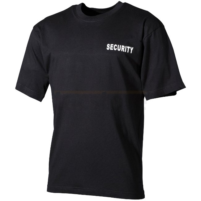 Bleiben Sie stilvoll und sicher in dem MFH Security Print T-Shirt. Merkmale "SECURITY" Aufdruck auf Rücken und Brust, verstärkter Rundhalsausschnitt. Material: 100% Baumwolle, 160 g/m2.