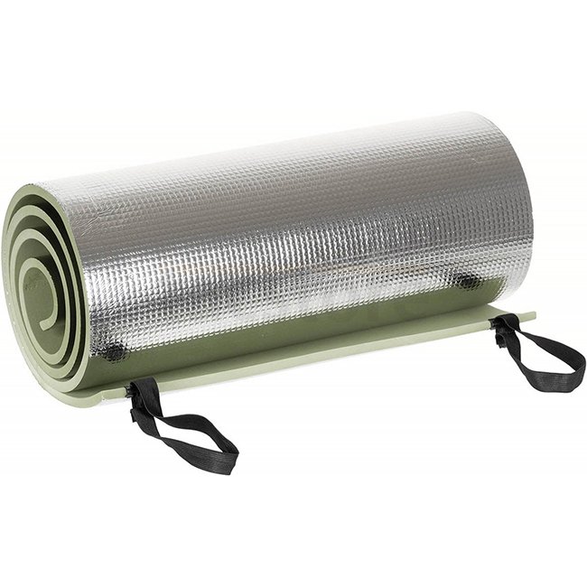 MFH Schlafmatte Aluminium Beschichtet - Oliv: Bequeme und leichte Schlafmatte mit elastischen Riemen. Packmaß 50x16x16cm, Maße 200x50x1cm, Gewicht 280g. Hergestellt aus 90% EVA, 10% Aluminium.