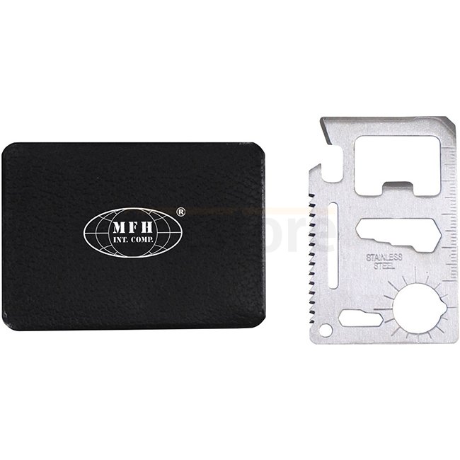 MFH Survival Pocket Tool - Silber: Kompakte und vielseitige Werkzeugkarte mit 11 Funktionen für all Ihre Überlebensbedürfnisse. Enthält Dosenöffner, Messer, Schraubendreher, Lineal, Flaschenöffner, Säge und mehr. Perfekt für den täglichen Gebrauch und Not