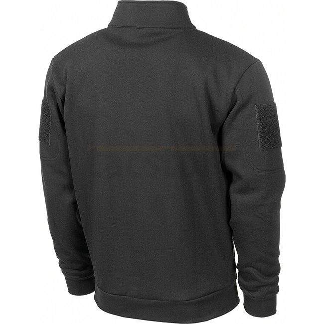 Bleiben Sie warm und stilvoll mit der schwarzen MFH Tactical Sweatjacke in Größe 4XL. Ausgestattet mit einem Reißverschluss vorne, gestrickten Bündchen, einem Stehkragen, 2 Hüfttaschen, 2 Oberarmtaschen mit Kopfhöreranschluss und angebrachten Klettflächen